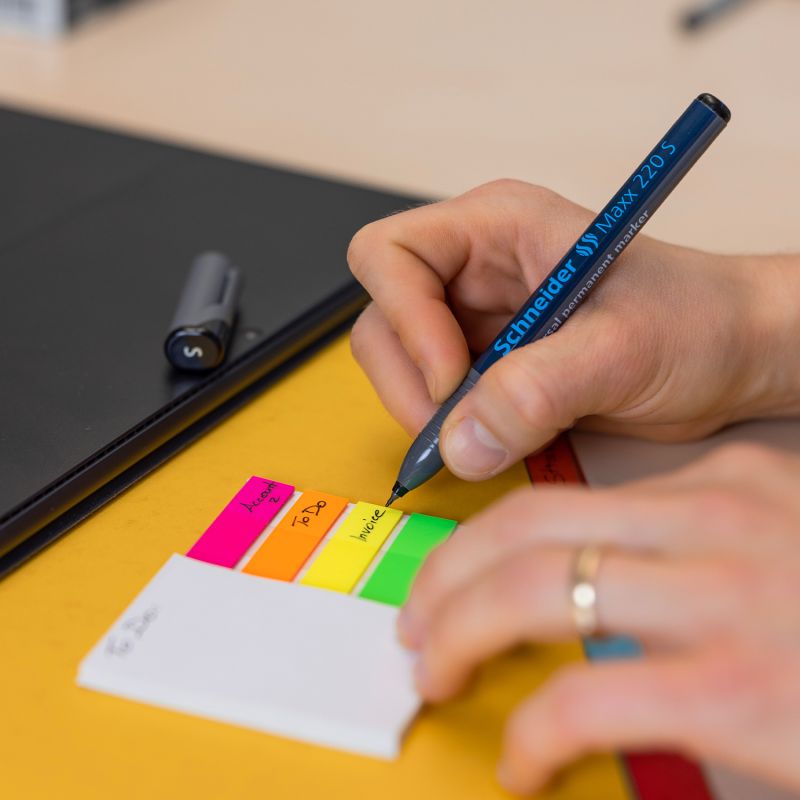 Permanent universal marker, superfine line width (S) approx. 0.4 mm. Writing colour green. For writing on transparencies (OHP), paper, plastic, glass, metal and almost all other materials. The marker’s vibrantly coloured ink is quick-drying, water-proof and highly light resistant. The cap-off ink does not run dry even if the cap is removed for 2-3 days. It has a low odour and is free of toluol and xylol. Slim pocket model with practical clip cap. Eco-friendly and resource-saving *pen body made of 92% recycled plastic.